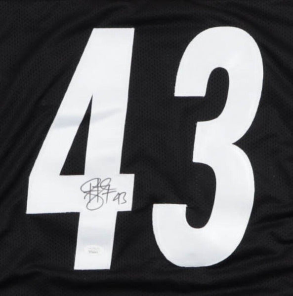 Custom on-field style jersey. Everything sewn on, size XL. Hand-signed by Troy Polamalu (HOF).The lot / autograph(s) includes an official James Spence Authentication (JSA) hologram and matching COA for authenticity purposes. The signing of this item was witnessed by JSA.Authentication: JSA COA