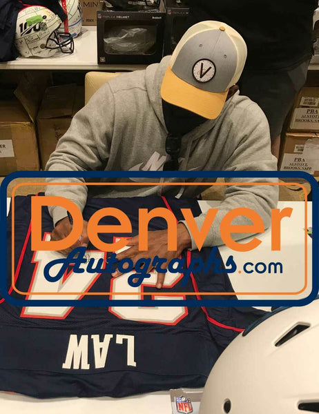 Ty Law Autographed/Signed Pro Style Blue XL Jersey BAS 33200 The number in the listing title is just an inventory sku for our records and is not the authentication number. This is a custom pro style blue XL jersey with sewn on name and numbers that was personally autographed by Ty Law. Includes a certificate of authenticity from Beckett Authentication Services (BAS) and Denver Autographs.