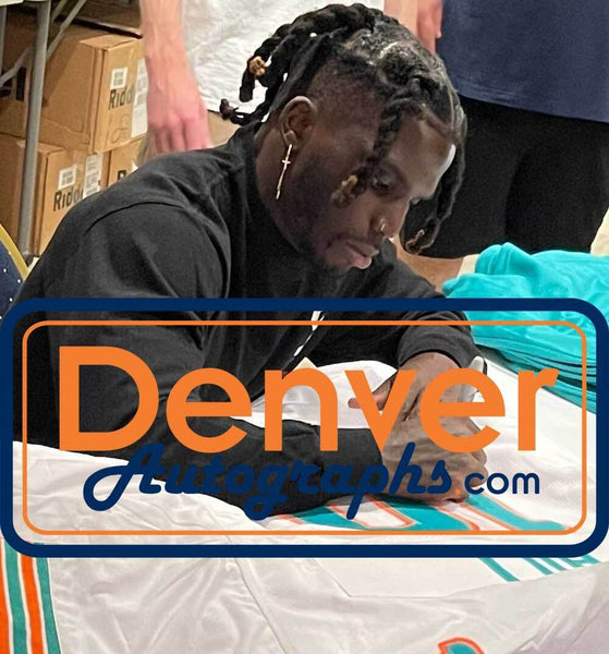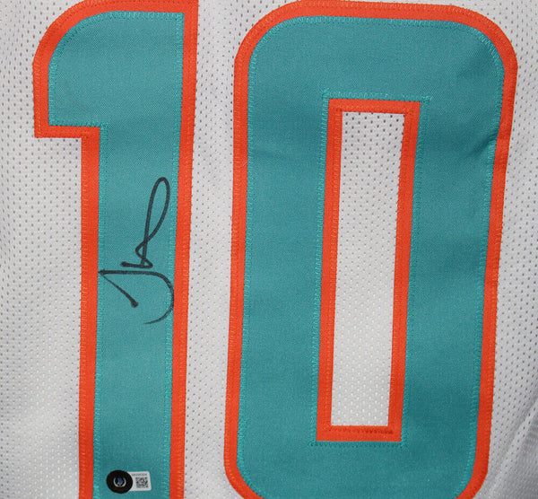 Tyreek Hill Autographed/Signed Pro Style White XL Jersey Beckett 36250 The number in the listing title is just an inventory sku for our records and is not the authentication number. The item pictured is a stock photo unless otherwise noted. This is a custom pro style white XL jersey with sewn on name and numbers that was personally autographed by Tyreek Hill. Includes a certificate of authenticity from Beckett Authentication Services (BAS) and Denver Autographs.