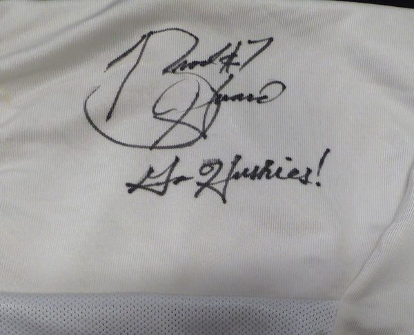 This is a White Jersey that has been hand signed by Brock Huard. This item was inscribed "Go Huskies!." This item has been certified authentic by Beckett Authentication (BAS) and comes with their tamper-proof QR Code hologram.