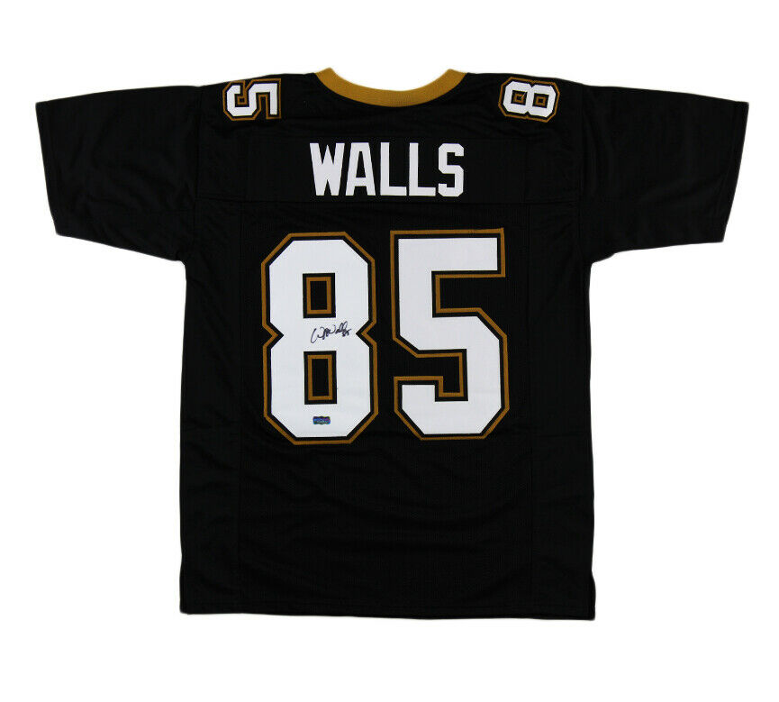 A New Orleans Black Custom Jersey hand signed by Wesley Walls. The item and signature are in excellent condition. Wesley is a retired NFL tight end, who played 14 seasons in his professional career. 5x Pro Bowler, 4x All-Pro, Super Bowl XXIV Champion, and a College Football Hall of Fame inductee. AUTHENTICATION: The item is accompanied by a Certificate of Authenticity - Serial Numbered and Databased Hologram