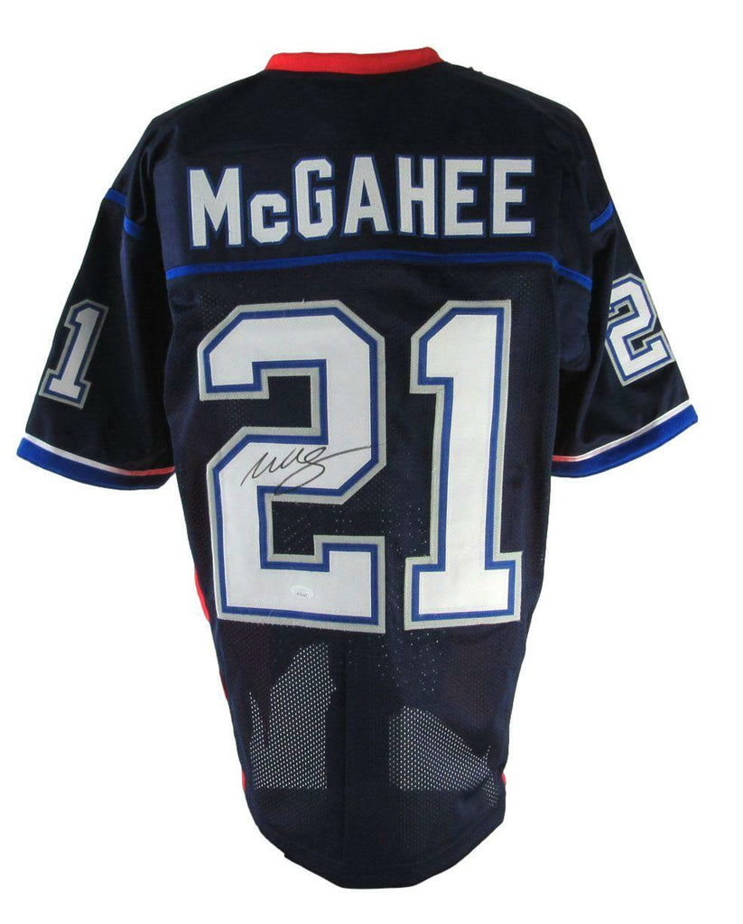 Willie McGahee Signed/Autographed Buffalo Bills Blue Custom Football Jersey Size XL. This jersey is authenticated by JSA and includes their Tamper-proof Sticker and Certificate of Authenticity.