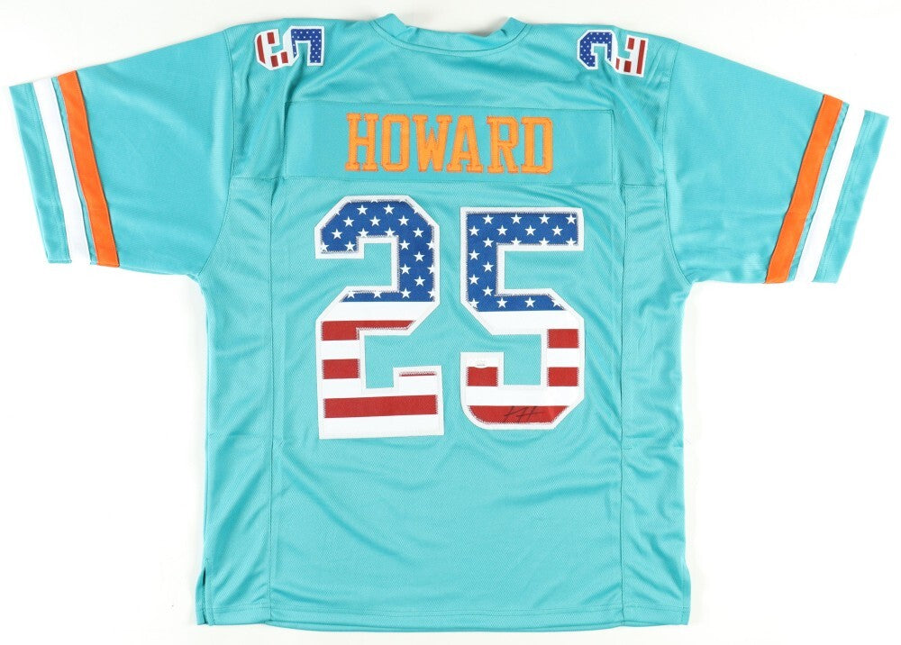 Custom on-field style jersey. Everything is sewn on, size XL. Has been hand-signed in black felt-tip pen by Xavien Howard. The lot / autograph(s) includes an official James Spence Authentication (JSA) hologram and matching COA for authenticity purposes. The signing of this item was witnessed by JSA.Authentication: JSA COA