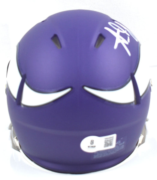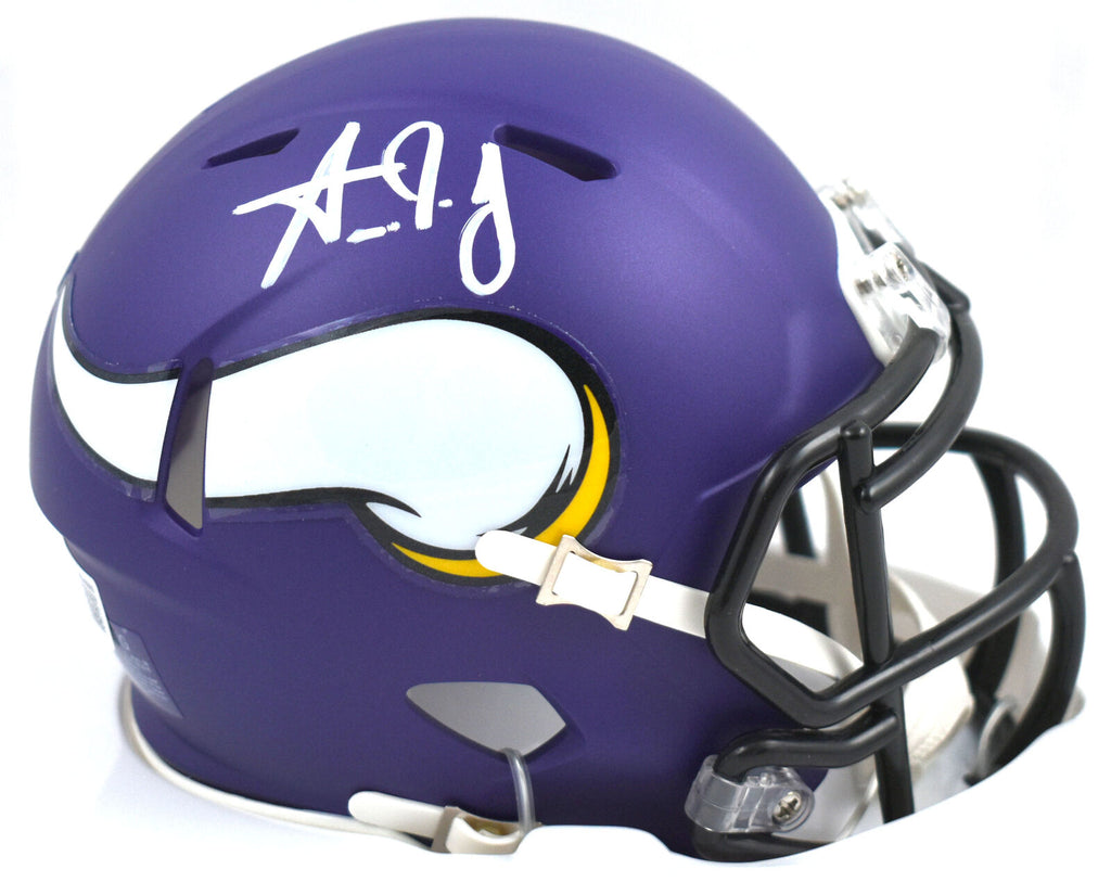 This is a hand autographed Riddell Speed Mini Helmet of Aaron Jones of the Minnesota Vikings. This item has a Beckett Witnessed Authentication, which comes with a numbered hologram for verification and a QR code for verification. You can view this item on the Beckett Authentication website. It was signed either at a public autograph appearance or a private signing. This is a hand autographed Speed Mini Helmet of Justin Jefferson of the Minnesota Vikings. This item has a Beckett Witnessed Authentication, which comes with a numbered hologram for verification and a QR code for verification. You can view this item on the Beckett Authentication website. It was signed either at a public autograph appearance or a private signing.