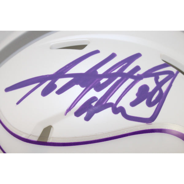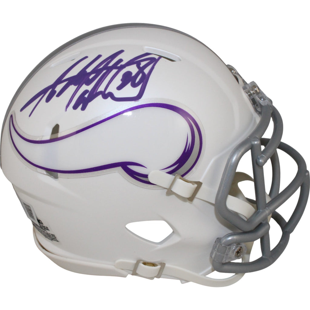 The number in the listing title is just an inventory sku for our records and is not the authentication number. The item pictured is a stock photo unless otherwise noted. This is a Minnesota Vikings 2024 Alternate Mini Helmet that was personally autographed by Adrian Peterson. Includes a certificate of authenticity from Beckett Authentication Services (BAS) and Denver Autographs.FREE SHIPPING within the USA on orders over $10!