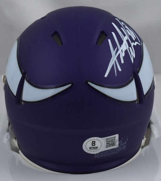 This is a Adrian Peterson of the Minnesota Vikings hand autographed Riddell Football Speed Mini Helmet. It has a Beckett Witnessed Authentication, which comes with a numbered hologram and a QR code for verification. You can view this item on the Beckett Authentication website and it shows when and where the item was signed. It was signed either at a public autograph appearance or a private signing. This is a stock photo of the item. Although you may not receive this exact item, the item you receive is virtually identical, brand new, and in great shape. This is a Adrian Peterson of the Minnesota Vikings hand autographed Riddell Football Speed Mini Helmet. It has a Beckett Witnessed Authentication, which comes with a numbered hologram and a QR code for verification. You can view this item on the Beckett Authentication website and it shows when and where the item was signed. It was signed either at a public autograph appearance or a private signing. This is a stock photo of the item. Although you may not receive this exact item, the item you receive is virtually identical, brand new, and in great shape.