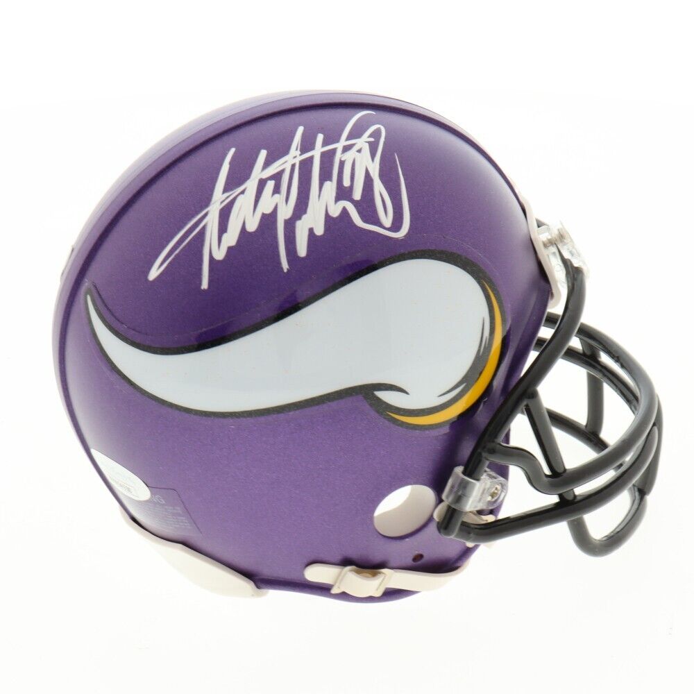 Riddell Minnesota Vikings mini helmet has been hand-signed by Adrian Peterson.The lot / autograph(s) includes an official James Spence Authentication (JSA) hologram and matching COA for authenticity purposes. The signing of this item was witnessed by JSA.Authentication: JSA COA
