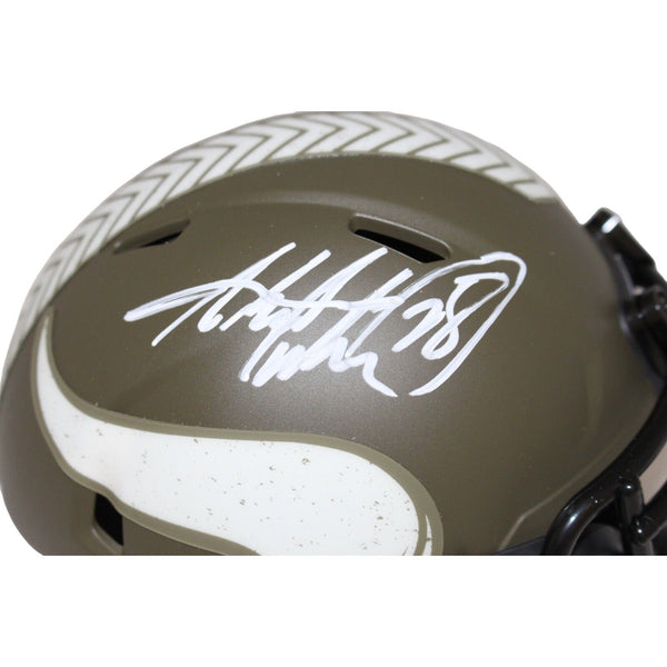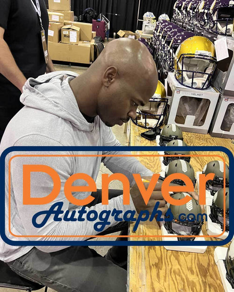 Adrian Peterson Signed Minnesota Vikings Salute Mini Helmet Beckett 42365 The number in the listing title is just an inventory sku for our records and is not the authentication number. The item pictured is a stock photo unless otherwise noted. This is a Minnesota Vikings Salute to Service Mini Helmet that was personally autographed by Adrian Peterson. Includes a certificate of authenticity from Beckett Authentication Services (BAS) and Denver Autographs.