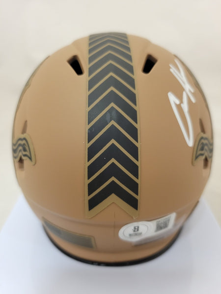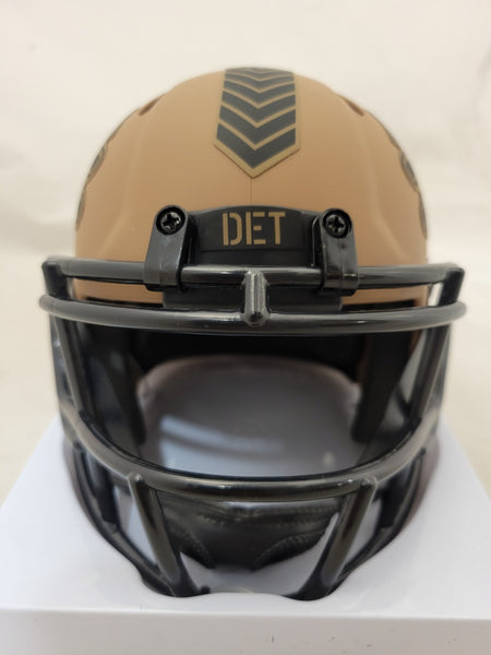 AIDAN HUTCHINSON AUTOGRAPHED / SIGNED DETROIT LIONS SALUTE TO SERVICE (STS2) SPEED MINI HELMET WITH BECKETT QR
