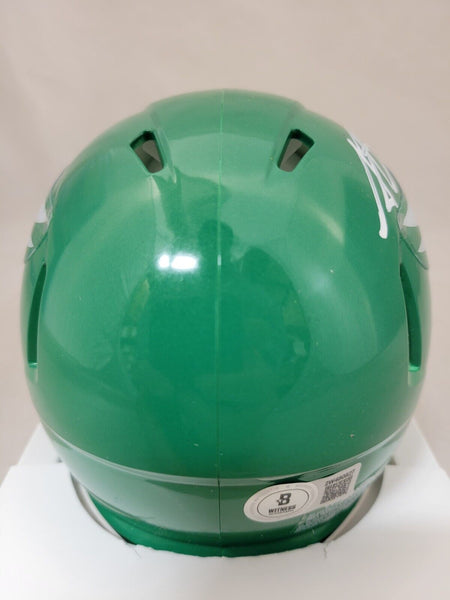 AJ BROWN AUTOGRAPHED PHILADELPHIA EAGLES KELLY GREEN SPEED MINI HELMETBECKETT QR COATHIS MEANS THE HELMET WAS SIGNED WITH A BECKETT REPRESENTATIVE PRESENT SO YOU CAN BE 100% CERTAIN ITS THE REAL THING.