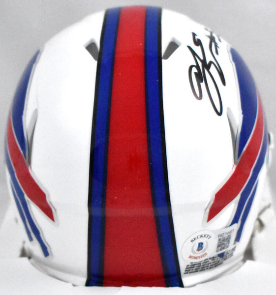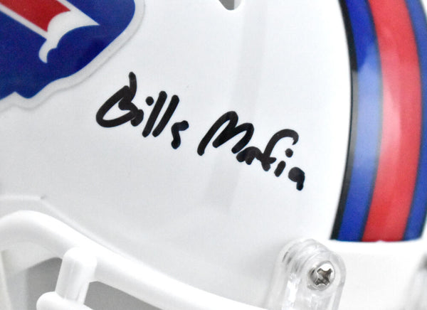 AJ Epenesa Autographed Buffalo Bills Speed Mini Helmet w/Bills Mafia-Beckett W Hologram *Black This is a hand autograph of AJ Epenesa of the Buffalo Bills on a Riddell Football Speed Mini Helmet. Inscribed Bills Mafia. This item has a Beckett Witnessed Authentication, which comes with a numbered hologram and a QR code for verification. You can view this item on the Beckett Authentication website. It was signed either at a public autograph appearance or a private signing. This is a stock photo of the item. Although you may not receive this exact item, the item you receive is virtually identical and brand new in great shape.