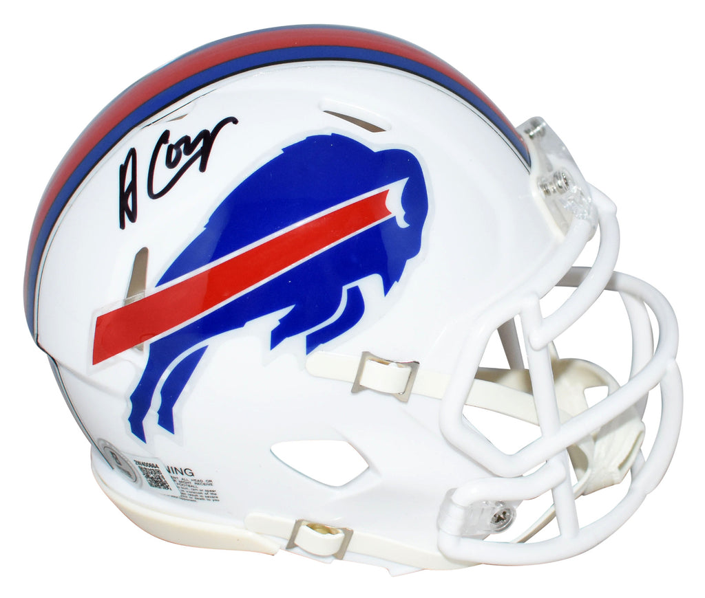 Amari Cooper, star wide receiver for the Buffalo Bills, has hand signed this Bills Riddell Speed mini helmet at a private signing. This item is authenticated by Beckett Authentication Services and was signed in the presence of one of their representatives. Their tamper-evident hologram featuring a QR code and serial number is on the item. The authenticity can be verified online by entering the serial number or scanning the QR code.Item pictured may not be the exact item you will receive. It will be similar quality, and we guarantee your satisfaction.