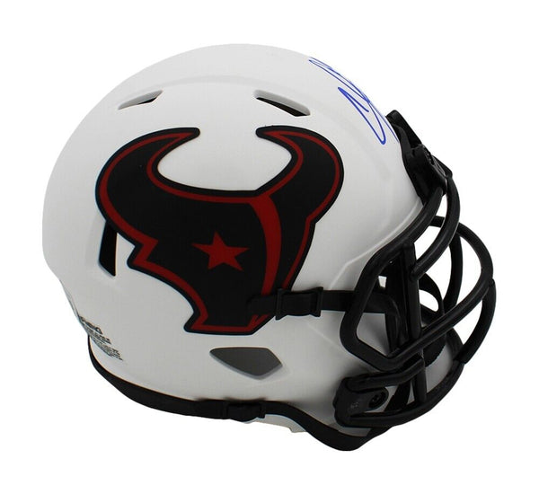 A Houston Texans Speed Lunar NFL Mini Helmet hand signed by Andre Johnson. The item and signature are in excellent condition. Andre is a former NFL wide receiver. In college he played for the University of Miami Hurricanes. He's a 7x Pro Bowler. AUTHENTICATION: The item is accompanied by a Beckett Certificate of Authenticity - Beckett Serial Numbered and Databased Hologram