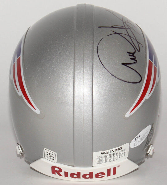 Riddell New England Patriots mini-helmet. Hand-signed in black felt-tip pen by Andre Tippett (HOF). The lot / autograph(s) includes an official James Spence Authentication (JSA) hologram and matching COA for authenticity purposes.Authentication: JSA COA