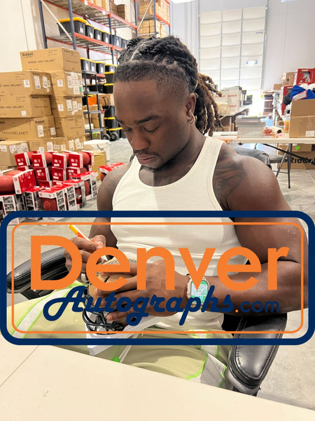 The number in the listing title is just an inventory sku for our records and is not the authentication number. The item pictured is a stock photo unless otherwise noted. This is a Las Vegas Raiders 2023 Salute to Service Mini Helmet that was personally autographed by Ashton Jeanty. Includes a certificate of authenticity from Beckett Authentication Services (BAS) and Denver Autographs.