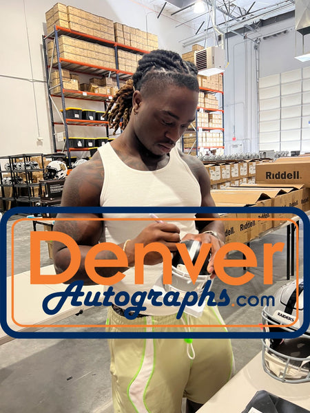 The number in the listing title is just an inventory sku for our records and is not the authentication number. The item pictured is a stock photo unless otherwise noted. This is a Las Vegas Raiders Blaze Mini Helmet that was personally autographed by Ashton Jeanty. Includes a certificate of authenticity from Beckett Authentication Services (BAS) and Denver Autographs.
