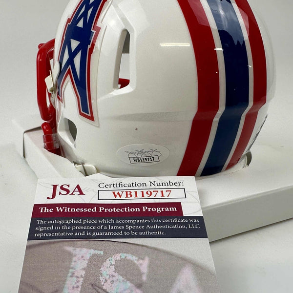 Autographed/Signed Earl Campbell Houston Oilers Mini Football Helmet JSA COA Authentic and comes with third party authentication.