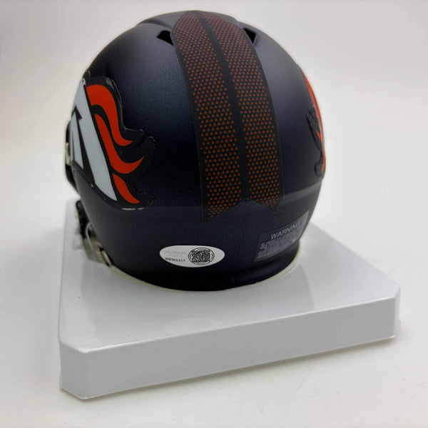 Autographed/Signed RJ R.J. Harvey Denver Broncos Speed Mini Football Helmet JSA Authentic and comes with third party authentication.