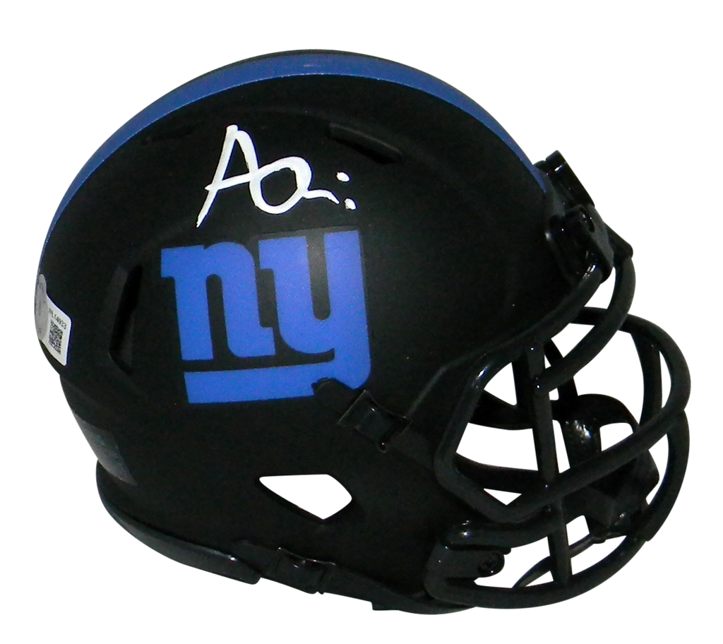 Azeez Ojulari, star linebacker for the New York Giants, has hand signed this Giants Riddell Speed Eclipse mini helmet at a private signing. This item is authenticated by Beckett Authentication Services, one of the best authenticators in the industry. Their tamper-evident hologram featuring a QR code and serial number is on the item. The authenticity can be verified online by entering the serial number or scanning the QR code.Item pictured may not be the exact item you will receive. It will be similar quality, and we guarantee your satisfaction.