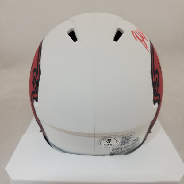 TAMPA BAY AUTOGRAPHED TAMPA BAY BUCCANEERS LUNAR ECLIPSE SPEED MINI HELMET WITH BECKETT QR COATHIS MEANS THE HELMET WAS SIGNED WITH A BECKETT REPRESENTATIVE PRESENT SO YOU CAN BE 100% CERTAIN ITS THE REAL THING.