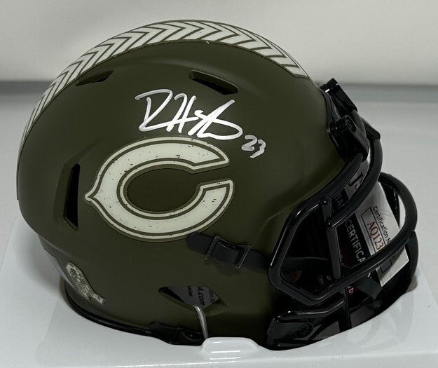 Riddell SALUTE TO SERVICE Speed Mini Helmet hand signed by Chicago Bears Hall of Famer DEVIN HESTER. The signature is in Silver Paint PEn. This item was signed at a private signing and would make a great addition to any Bears collection! This item is guaranteed to be 100% authentic and will include a COA from JSA authentication.