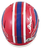This Autographed 1987-01 Throwback Speed Mini Helmet W/ Uv Mirrored Back Acrylic Display Case has been Personally Signed by Andre Reed of the Buffalo Bills. This item is 100% Authentic to include a hologram by Beckett Authentication Services. This item may come with the new Beckett Authentication hologram that has a scannable QR code rather than the traditional COA. If you would like to have a COA, you are welcome to reach out to Beckett for a printed certification once you receive your item. This is a BAS Witnessed Protection Program item which means a Beckett Authentication Service representative was present when this item was being signed. We conducted an autograph signing with Andre Reed where multiples of the same item were signed. While the photographs are representative of this item, the size, placement and strength of the signature may vary. Each item is hand signed, therefore, each autograph is unique. This item can be verified through BAS Witnessed.