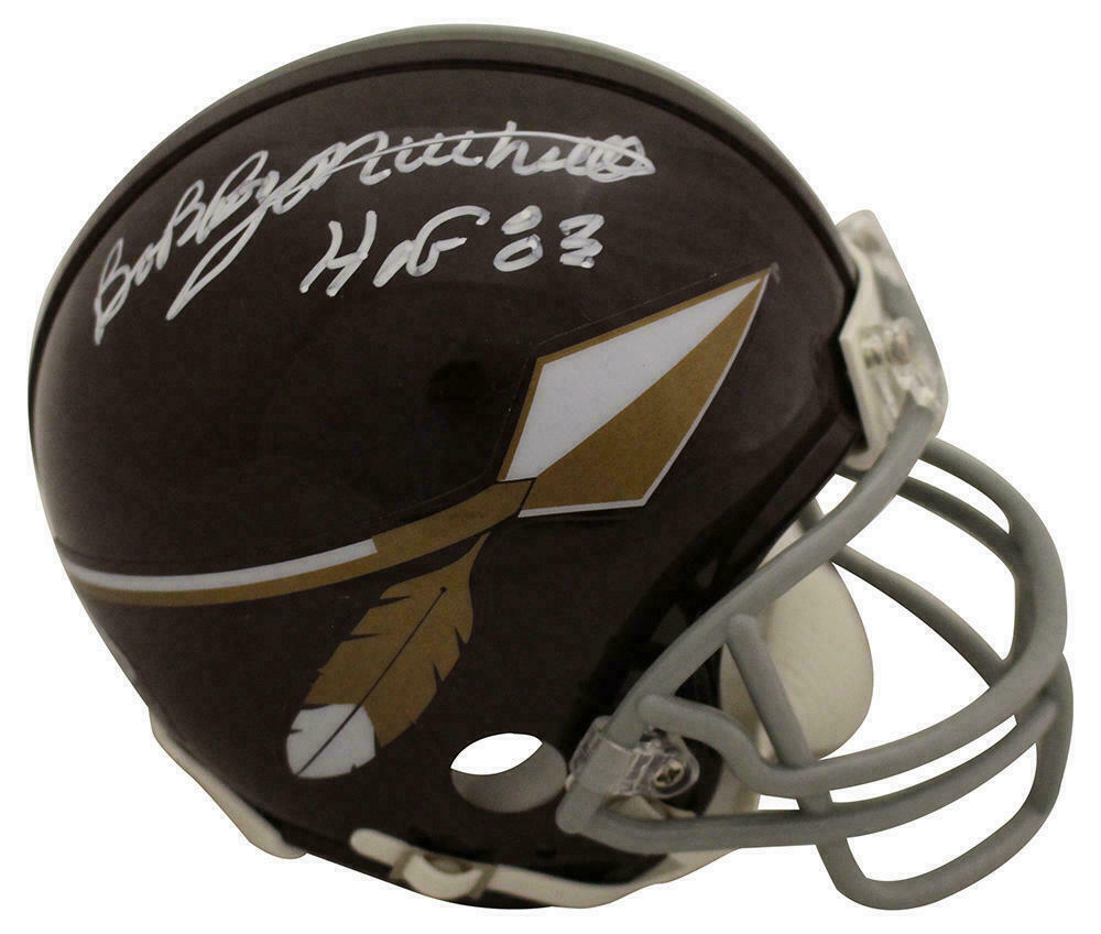 Bobby Mitchell Autographed/Signed Washington Redskins Mini Helmet HOF BAS 23846 This is a Washington Redskins Riddell throwback mini helmet that has been personally autographed by Bobby Mitchell with HOF inscription. This item includes a certificate of authentication from Beckett Authentication Services (BAS) and Denver Autographs.