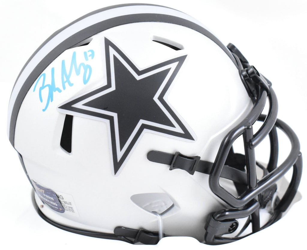 This is a hand autograph of Brandon Aubrey of the Dallas Cowboys on a Riddell Football Rave Speed Mini Helmet. This item has a Prova Authentication, which comes with a numbered sticker hologram and a QR code for verification. You can view this item on the Prova Authentication website and it shows when and where the item was signed. It was signed either at a public autograph appearance or a private signing. This is a stock photo of the item. Although you may not receive this exact item, the item you receive is virtually identical and brand new in great shape. This is a hand autograph of Brandon Aubrey of the Dallas Cowboys on a Riddell Football Rave Speed Mini Helmet. This item has a Prova Authentication, which comes with a numbered sticker hologram and a QR code for verification. You can view this item on the Prova Authentication website and it shows when and where the item was signed. It was signed either at a public autograph appearance or a private signing. This is a stock photo of the item. Although you may not receive this exact item, the item you receive is virtually identical and brand new in great shape.