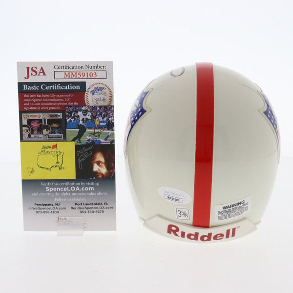 Riddell NFL Logo mini helmet. Hand-signed by Brett Favre (Atlanta Falcons, Green Bay Packers, New York Jets, Minnesota Vikings, HOF).The autograph(s) includes an official James Spence Authentication (JSA) hologram and matching COA for authenticity purposes.Authentication: JSA COA