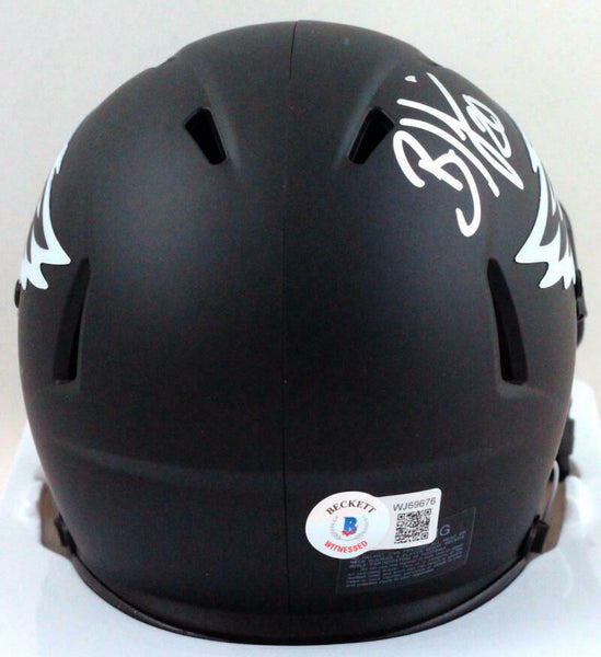 Brian Dawkins Autographed Eagles Eclipse Speed Mini Helmet- Beckett W *Silver This is a Brian Dawkins of the Philadelphia Eagles hand autographed Riddell Football Eclipse Speed Mini Helmet. This item has a Beckett Witnessed Authentication, which comes with a numbered and a matching Certificate of Authenticity. You can view this item on the Beckett authentication website and it shows when and where the item was signed. It was signed either at a public autograph appearance or a private signing. This is a stock photo of the item. Although you may not receive this exact item, the item you receive is virtually identical, brand new, and in great shape.