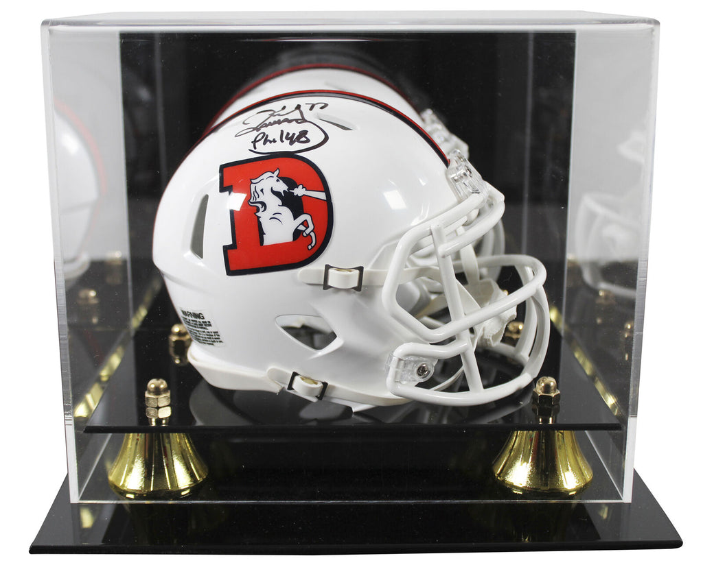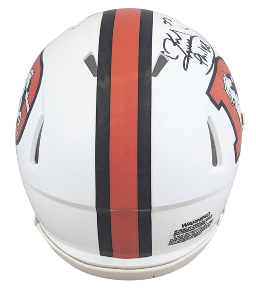 This Autographed 2023 On Field Alternate Speed Mini Helmet W/ Uv Mirrored Back Acrylic Display Case has been Personally Signed by Karl Mecklenburg of the Denver Broncos. This item is 100% Authentic to include a hologram by Beckett Authentication Services. This item may come with the new Beckett Authentication hologram that has a scannable QR code rather than the traditional COA. If you would like to have a COA, you are welcome to reach out to Beckett for a printed certification once you receive your item. This is a BAS Witnessed Protection Program item which means a Beckett Authentication Service representative was present when this item was being signed. We conducted an autograph signing with Karl Mecklenburg where multiples of the same item were signed. While the photographs are representative of this item, the size, placement and strength of the signature may vary. Each item is hand signed, therefore, each autograph is unique. This item can be verified through BAS Witnessed.