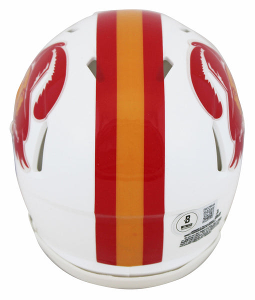 This Autographed 1976-96 Throwback Speed Mini Helmet W/ Uv Mirrored Back Acrylic Display Case has been Personally Signed by John Lynch of the Tampa Bay Buccaneers. This item is 100% Authentic to include a hologram by Beckett Authentication Services. This item will come with an affixed Beckett Authentication Services (BAS) authentication sticker, which includes a scannable QR code to verify authenticity. Please note that Beckett no longer provides serial-numbered COA cards, and the attached BAS sticker will serve as the complete authentication for this item. This is a BAS Witnessed Protection Program item which means a Beckett Authentication Service representative was present when this item was being signed. We conducted an autograph signing with John Lynch where multiples of the same item were signed. While the photographs are representative of this item, the size, placement and strength of the signature may vary. Each item is hand signed, therefore, each autograph is unique. This item can be verified through BAS Witnessed.