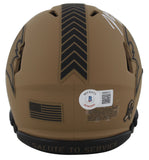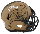 This Autographed Alternate 2023 Salute To Service II Speed Mini Helmet has been Personally Signed by John Lynch of the Tampa Bay Buccaneers. This item is 100% Authentic to include a hologram by Beckett Authentication Services. This item will come with an affixed Beckett Authentication Services (BAS) authentication sticker, which includes a scannable QR code to verify authenticity. Please note that Beckett no longer provides serial-numbered COA cards, and the attached BAS sticker will serve as the complete authentication for this item. This is a BAS Witnessed Protection Program item which means a Beckett Authentication Service representative was present when this item was being signed. We conducted an autograph signing with John Lynch where multiples of the same item were signed. While the photographs are representative of this item, the size, placement and strength of the signature may vary. Each item is hand signed, therefore, each autograph is unique. This item can be verified through BAS Witnessed.