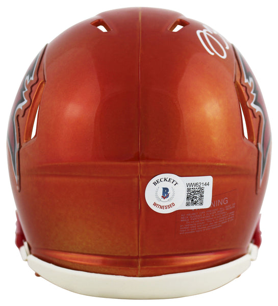 This Autographed Alternate Flash Speed Mini Helmet has been Personally Signed by Mike Alstott of the Tampa Bay Buccaneers. This item is 100% Authentic to include a hologram by Beckett Authentication Services. This item will come with the new Beckett Authentication hologram that has a scannable QR code rather than the traditional COA. If you would like to have a COA, you are welcome to reach out to Beckett for a printed certification once you receive your item. This is a BAS Witnessed Protection Program item which means a Beckett Authentication Service representative was present when this item was being signed. We conducted an autograph signing with Mike Alstott where multiples of the same item were signed. While the photographs are representative of this item, the size, placement and strength of the signature may vary. Each item is hand signed, therefore, each autograph is unique. This item can be verified through BAS Witnessed.