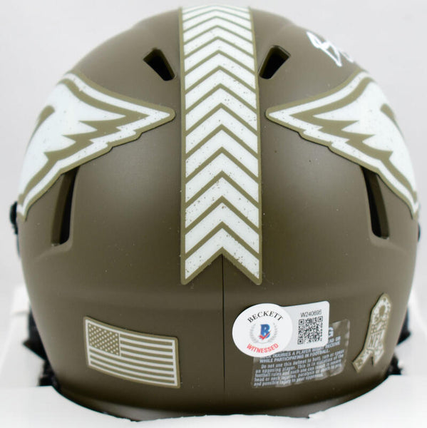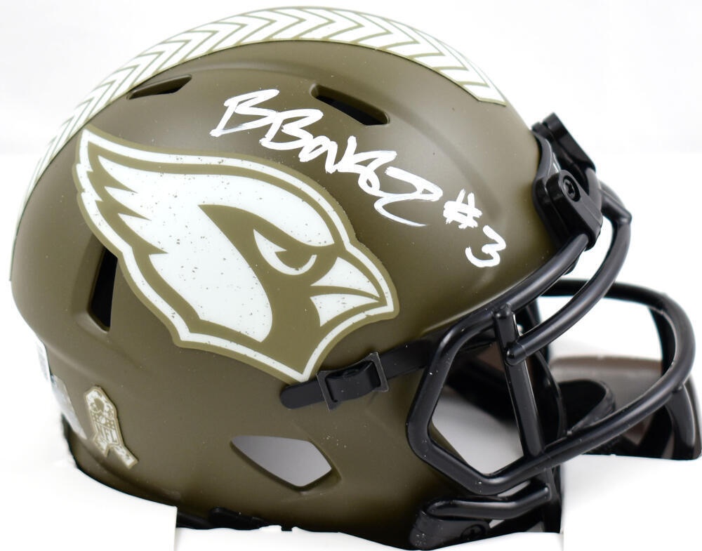 Budda Baker Autographed Arizona Cardinals Salute to Service Speed Mini Helmet-Beckett W Hologram *White This is a Budda Baker of the Arizona Cardinals hand autographed Riddell Salute to Service Speed mini helmet. This item has a Beckett Witnessed Authentication, which comes with a numbered sticker hologram and a QR code for verification. You can view this item on the Beckett Authentication website, it shows when and where the item was signed. It was signed either at a public autograph appearance or a private signing. This is a stock photo of the item. Although you may not receive this exact item, the item you receive is virtually identical, brand new, and in great shape.