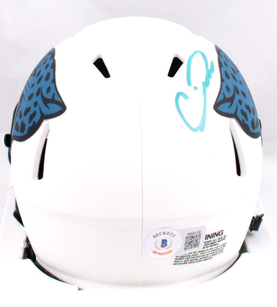 Calvin Ridley Autographed Jacksonville Jaguars Lunar Speed Mini Helmet -Beckett W Hologram *Teal This is a hand autograph of Calvin Ridley of the Jacksonville Jaguars on a Riddell Football Lunar Speed Mini Helmet. This item has a Beckett Witnessed Authentication, which comes with a numbered hologram and a QR code for verification. You can view this item on the Beckett Authentication website, it shows when and where the item was signed. It was signed either at a public autograph appearance or a private signing. This is a stock photo of the item. Although you may not receive this exact item, the item you receive is virtually identical and brand new in great shape.