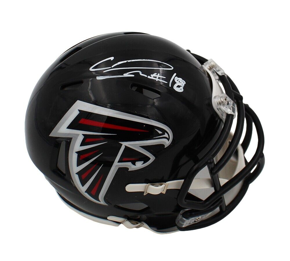 An Atlanta Falcons Speed NFL Mini Helmet hand signed by Calvin Ridley. The item and signature are in excellent condition. Calvin is a wide receiver for the Atlanta Falcons. He played college football at Alabama and was drafted by the Falcons in the first round of the 2018 NFL Draft. He is a First-team All-SEC (2017), Second-team All-SEC (2016), 2x CFP National Champion (2015, 2017), 2x SEC Champion (2015, 2016), and USA Today Freshman All-America (2015). AUTHENTICATION: The item is accompanied by a Certificate of Authenticity - Serial Numbered and Databased Hologram