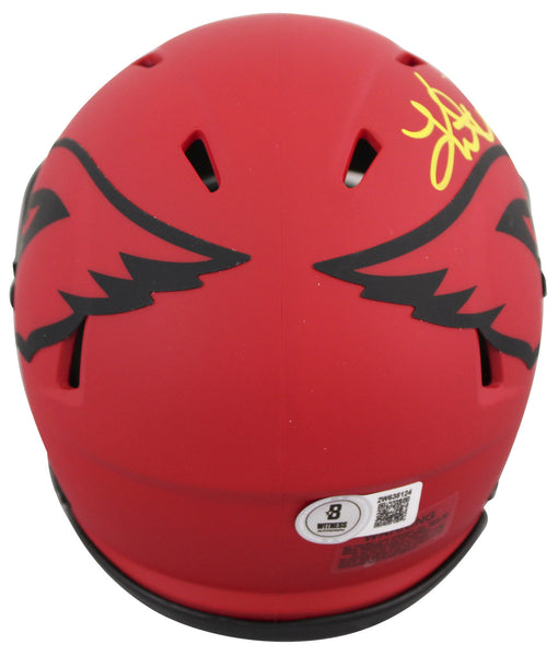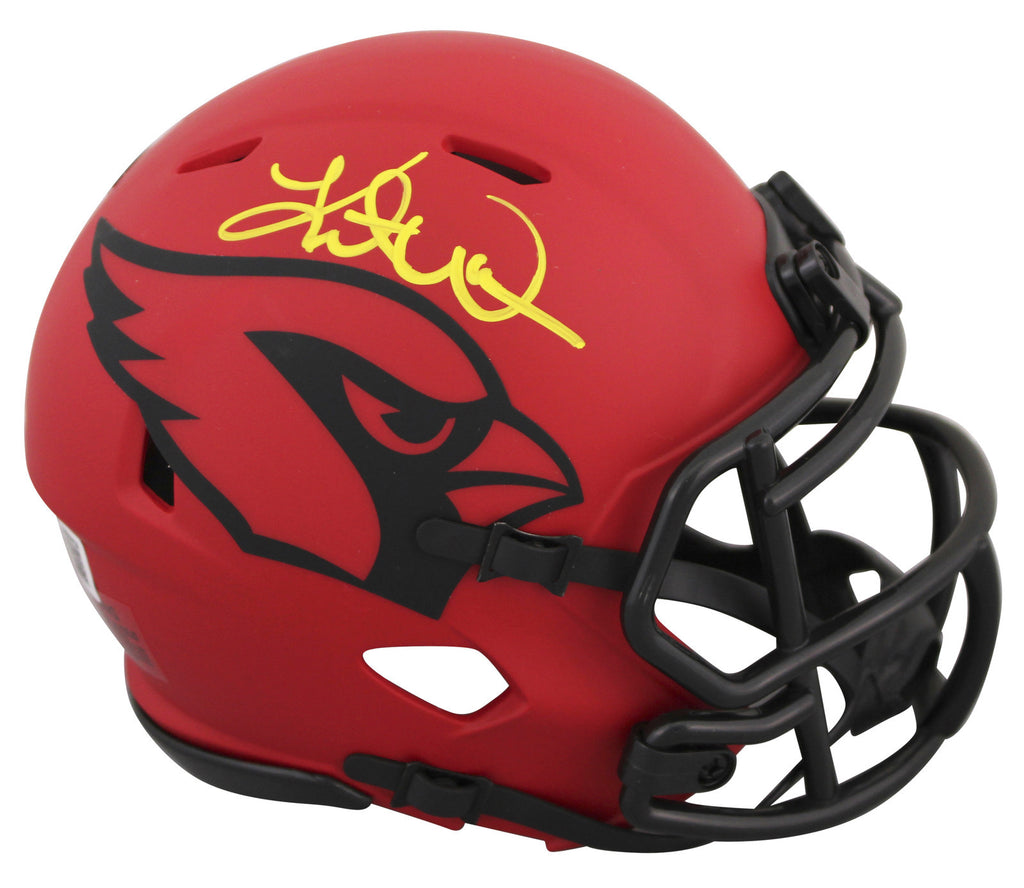 This Autographed Alternate Rave Speed Mini Helmet has been Personally Signed by Kurt Warner of the Arizona Cardinals. This item is 100% Authentic to include a hologram by Beckett Authentication Services. This item will come with an affixed Beckett Authentication Services (BAS) authentication sticker, which includes a scannable QR code to verify authenticity. Please note that Beckett no longer provides serial-numbered COA cards, and the attached BAS sticker will serve as the complete authentication for this item. This is a BAS Witnessed Protection Program item which means a Beckett Authentication Service representative was present when this item was being signed. We conducted an autograph signing with Kurt Warner where multiples of the same item were signed. While the photographs are representative of this item, the size, placement and strength of the signature may vary. Each item is hand signed, therefore, each autograph is unique. This item can be verified through BAS Witnessed.