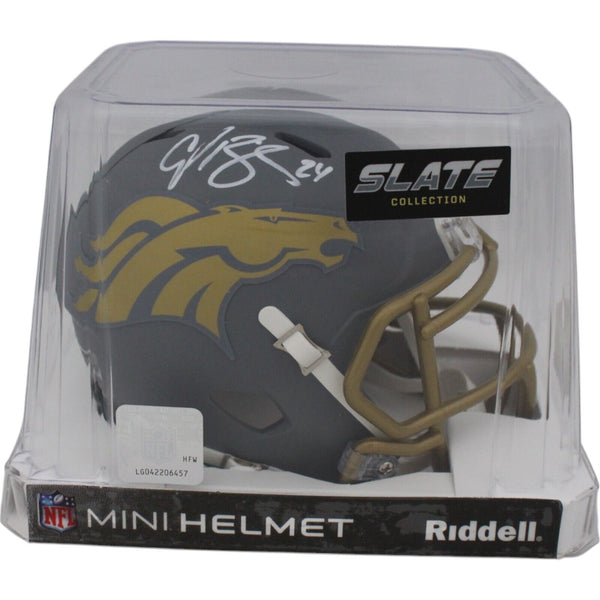 The number in the listing title is just an inventory sku for our records and is not the authentication number. The item pictured is a stock photo unless otherwise noted. This is a Denver Broncos Slate Mini Helmet that was personally autographed by Champ Bailey. Includes a certificate of authenticity from Beckett Authentication Services (BAS) and Denver Autographs.FREE SHIPPING within the USA on orders over $10!