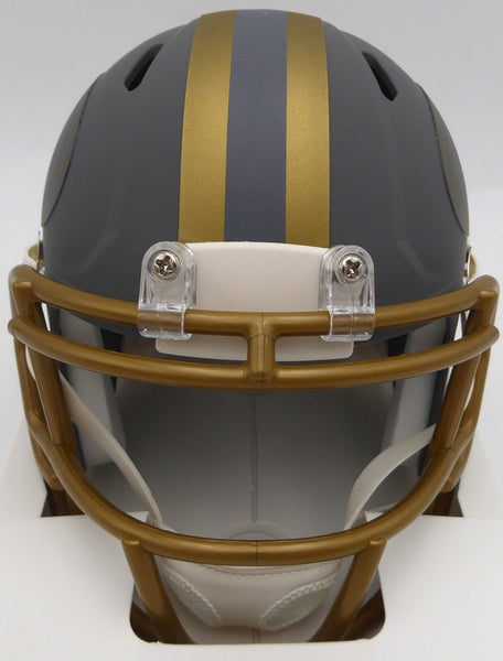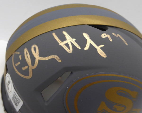 This is a San Francisco 49ers Slate Gray Mini Helmet that has been hand signed by Charles Haley. There is an imperfection in the signature as shown. This item has been certified authentic by Beckett Authentication (BAS) and comes with their tamper-proof QR Code sticker that can be verified on the Beckett-authentication.com.