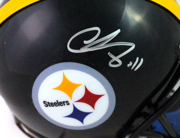 This is a Chase Claypool of the Pittsburgh Steelers hand autographed Riddell Mini Helmet. This item has a Beckett Witnessed Authentication, which comes with a hologram. You can view this item on the Beckett Authentication website and it shows when and where the item was signed. It was signed either at a public autograph appearance or a private signing. This is a stock photo of the item. Although you may not receive this exact item, the item you receive is virtually identical, brand new, and in great shape. This is a Chase Claypool of the Pittsburgh Steelers hand autographed Riddell Mini Helmet. This item has a Beckett Witnessed Authentication, which comes with a hologram. You can view this item on the Beckett Authentication website and it shows when and where the item was signed. It was signed either at a public autograph appearance or a private signing. This is a stock photo of the item. Although you may not receive this exact item, the item you receive is virtually identical, brand new, and in great shape.