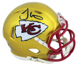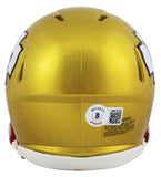 This Autographed Alternate Flash Speed Mini Helmet has been Personally Signed by Tyreek Hill of the Kansas City Chiefs. This item is 100% Authentic to include a hologram by Beckett Authentication Services. This item will come with the new Beckett Authentication hologram that has a scannable QR code rather than the traditional COA. If you would like to have a COA, you are welcome to reach out to Beckett for a printed certification once you receive your item. This is a BAS Witnessed Protection Program item which means a Beckett Authentication Service representative was present when this item was being signed. We conducted an autograph signing with Tyreek Hill where multiples of the same item were signed. While the photographs are representative of this item, the size, placement and strength of the signature may vary. Each item is hand signed, therefore, each autograph is unique. This item can be verified through BAS Witnessed.
