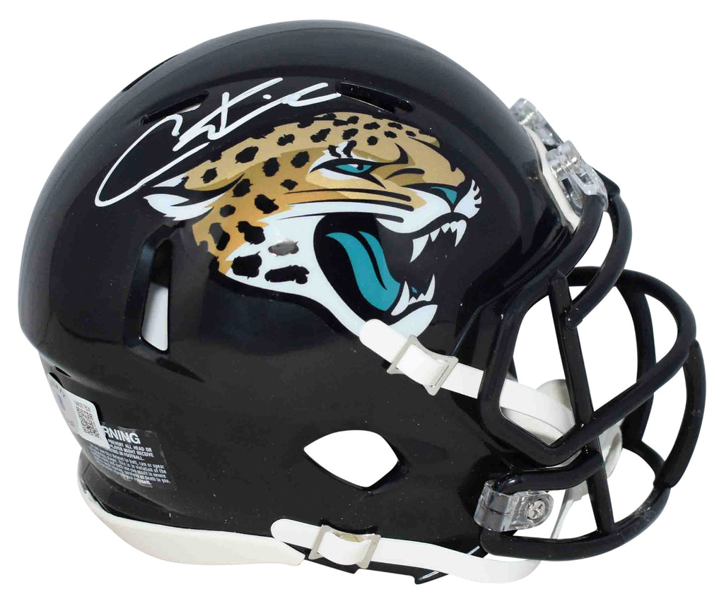 Christian Kirk, star wide receiver for the Jacksonville Jaguars, has hand signed this Jaguars Riddell Speed mini helmet at a private signing. This item is authenticated by Beckett Authentication Services and was signed in the presence of one of their representatives. Their tamper-evident hologram featuring a QR code and serial number is on the item. The authenticity can be verified online by entering the serial number or scanning the QR code.Item pictured may not be the exact item you will receive. It will be similar quality, and we guarantee your satisfaction.