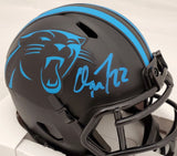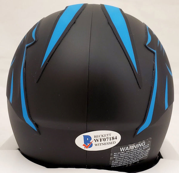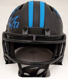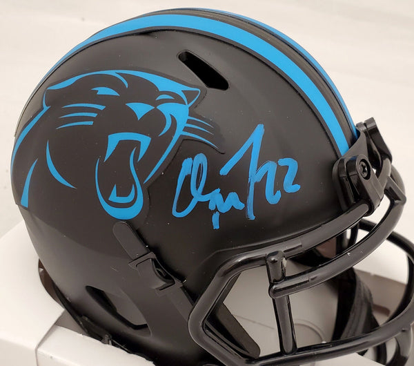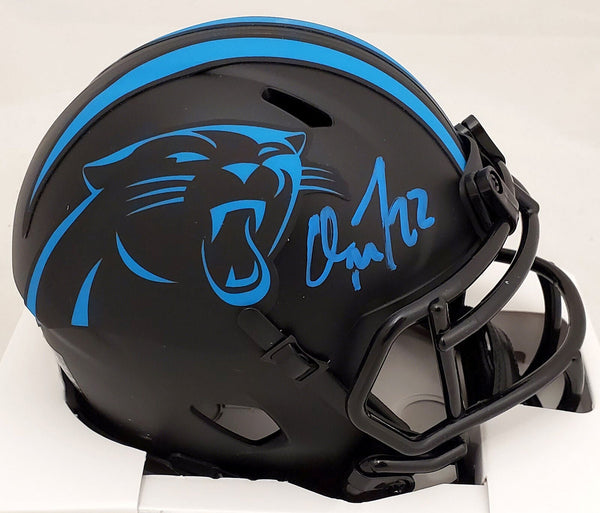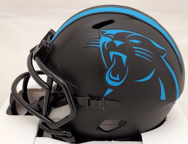 This is a Carolina Panthers Eclipse Black Speed Mini Helmet that has been hand signed by Christian McCaffrey. It has been certified authentic by Beckett Authentication (BAS) and comes with their sticker and matching certificate of authenticity. A A NOTE: The Eclipse Black helmets are very delicate and often have some marks or scratches on them.