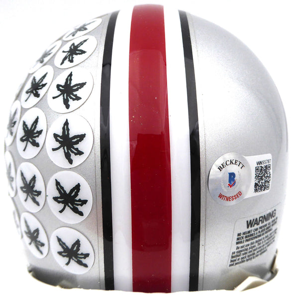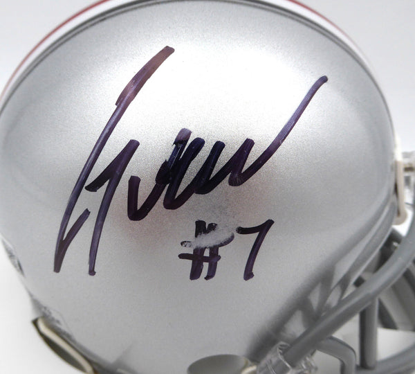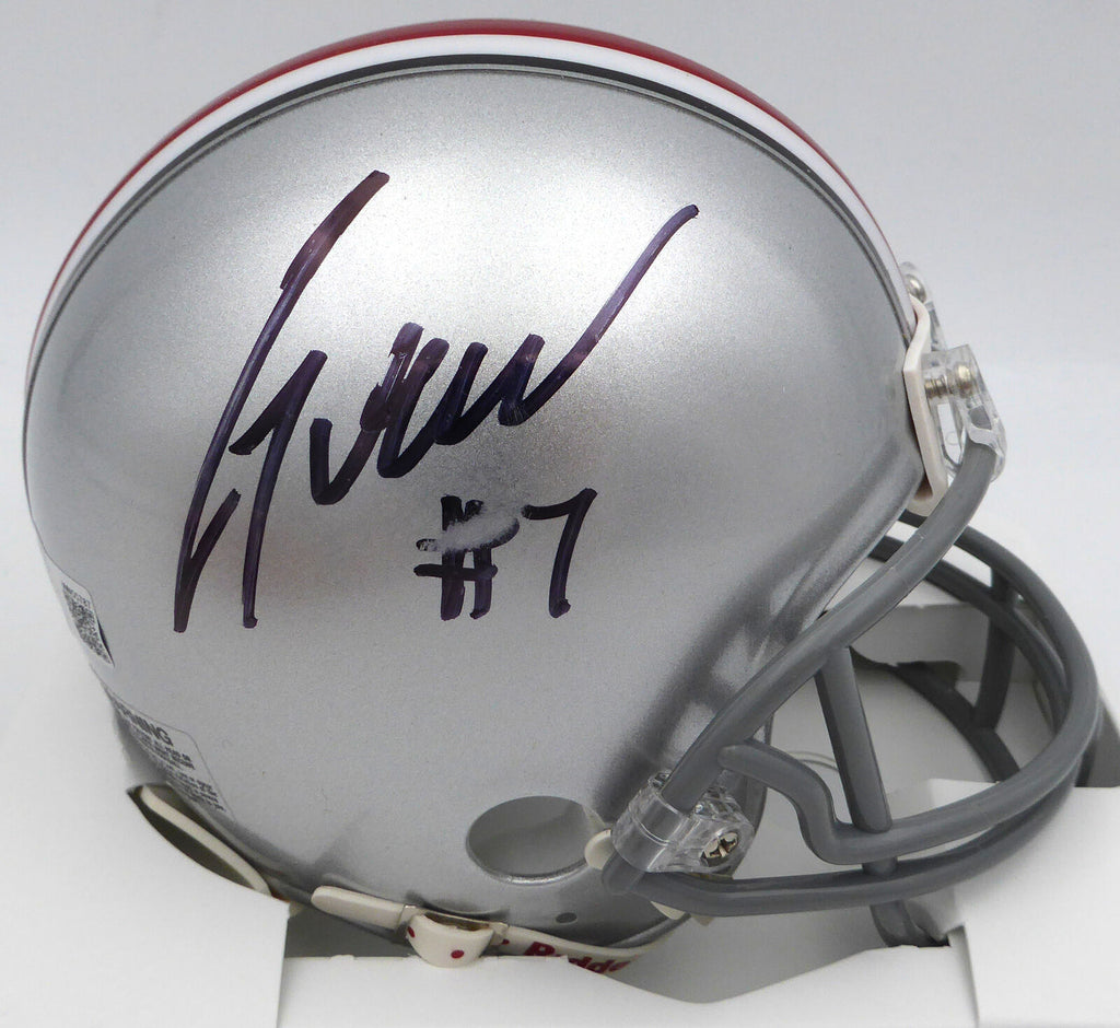 This is an Ohio State Buckeyes Speed Mini Helmet that has been hand signed by CJ C. J. Stroud. There is a smudge in the signature as shown. This item has been certified authentic by Beckett Authentication (BAS) and comes with their tamper-proof QR Code sticker that can be verified on the Beckett-authentication.com.