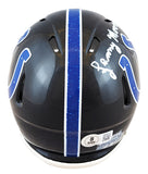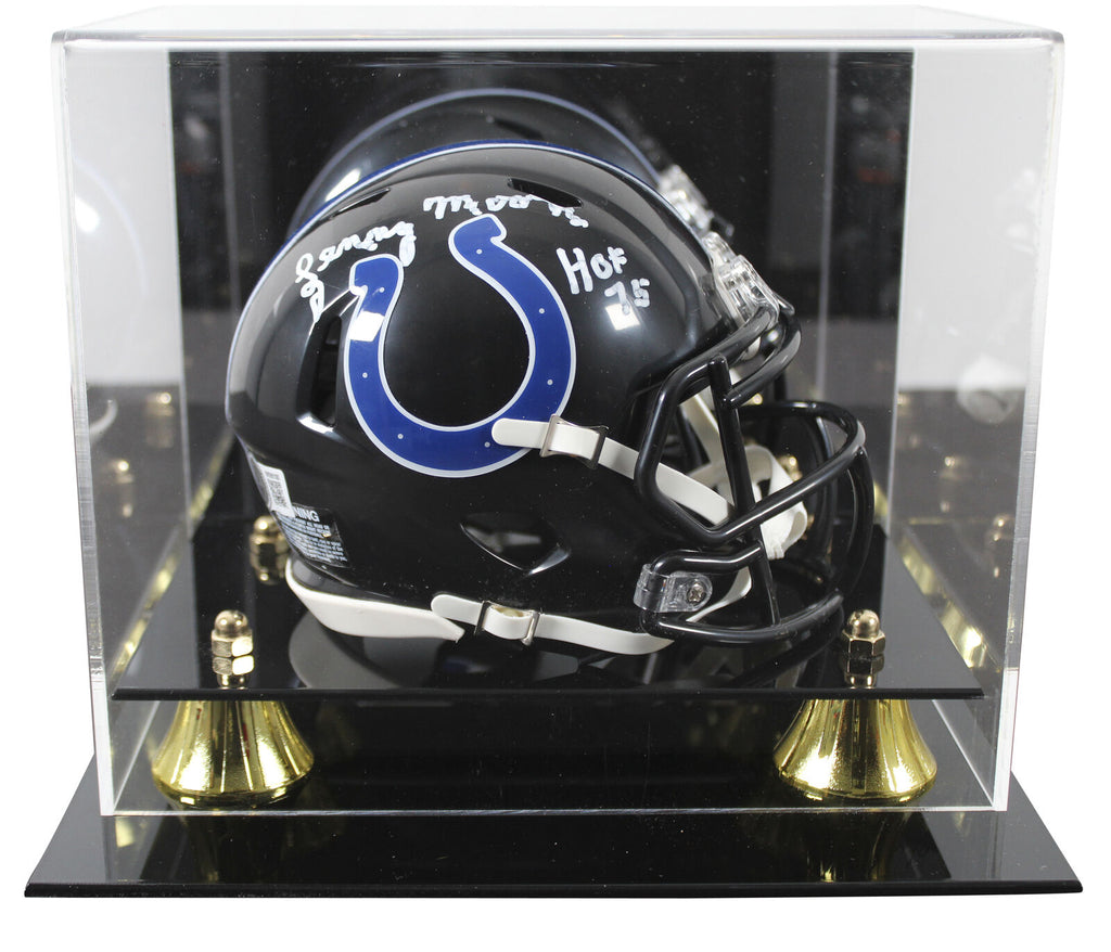 This Autographed Alternate On-Field 2023 Speed Mini Helmet W/ Uv Mirrored Back Acrylic Display Case with the inscription of "HOF 75" has been Personally Signed by Lenny Moore of the Baltimore Colts. This item is 100% Authentic to include a hologram by Beckett Authentication Services. This item will come with an affixed Beckett Authentication Services (BAS) authentication sticker, which includes a scannable QR code to verify authenticity. Please note that Beckett no longer provides serial-numbered COA cards, and the attached BAS sticker will serve as the complete authentication for this item. This is a BAS Witnessed Protection Program item which means a Beckett Authentication Service representative was present when this item was being signed. We conducted an autograph signing with Lenny Moore where multiples of the same item were signed. While the photographs are representative of this item, the size, placement and strength of the signature may vary. Each item is hand signed, therefore, each autograph is unique. This item can be verified through BAS Witnessed.