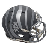 This Bengals Slate Riddell Speed mini helmet has been personally hand-signed by Corey Dillon. It comes with an individually numbered, tamper-evident hologram from Beckett Authentic. To ensure authenticity, the hologram can be reviewed online. This process helps to ensure that the product purchased is authentic and eliminates any possibility of duplication or fraud.
