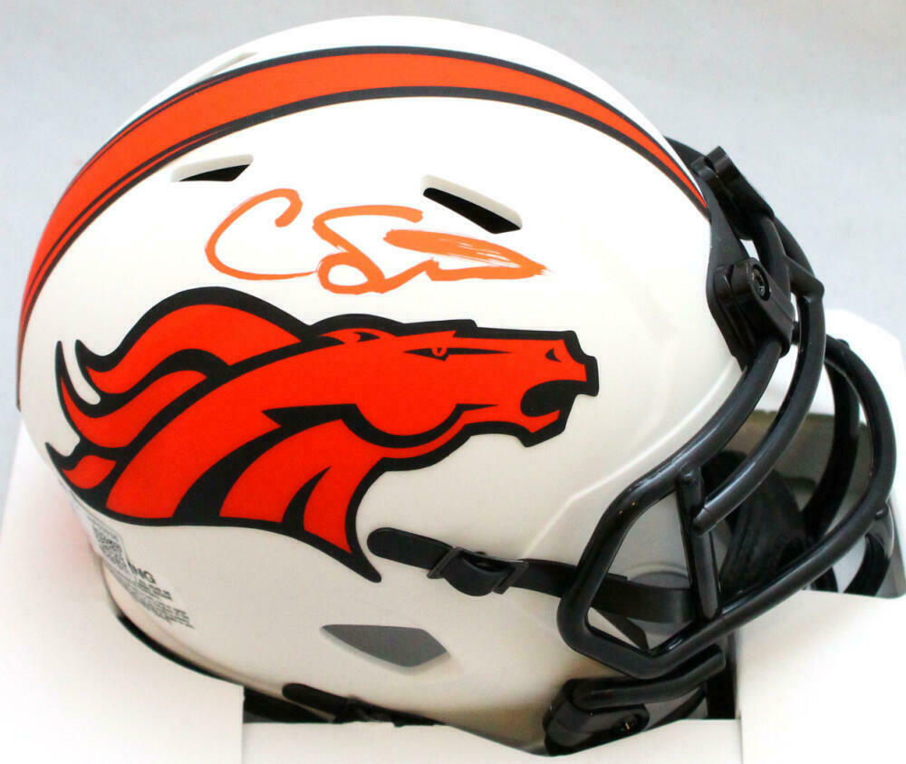 Courtland Sutton Autographed Denver Broncos Lunar Mini Helmet - Beckett W Hologram *Orange This is a Hand Autograph of Courtland Sutton of the Denver Broncos on a Riddell Football Lunar Mini Helmet. It has a Beckett Witness Authentication, which comes with a Beckett hologram sticker and a generic Beckett Certificate of Authenticity. You can view this item on the Beckett website and it shows when and where the item was signed. It was signed either at a public autograph appearance or a private signing. This is a stock photo of the item. Although you may not receive this exact item, the item you receive is virtually identical and brand new in great shape.
