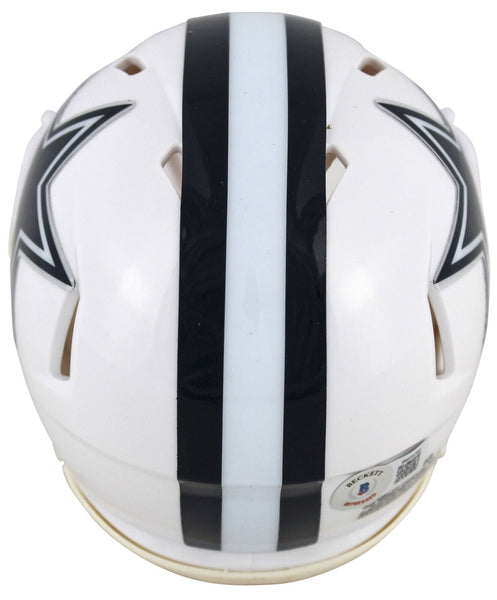 This Autographed 2022 Alternate White Speed Mini Helmet has been Personally Signed by Dak Prescott of the Dallas Cowboys. This item is 100% Authentic to include a hologram by Beckett Authentication Services. This item will come with an affixed Beckett Authentication Services (BAS) authentication sticker, which includes a scannable QR code to verify authenticity. Please note that Beckett no longer provides serial-numbered COA cards, and the attached BAS sticker will serve as the complete authentication for this item. This is a BAS Witnessed Protection Program item which means a Beckett Authentication Service representative was present when this item was being signed. We conducted an autograph signing with Dak Prescott where multiples of the same item were signed. While the photographs are representative of this item, the size, placement and strength of the signature may vary. Each item is hand signed, therefore, each autograph is unique. This item can be verified through BAS Witnessed.
