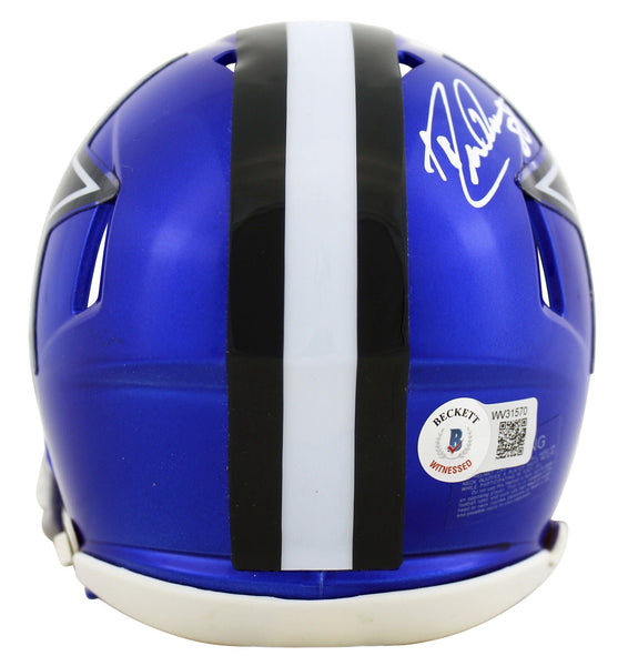 This Autographed Alternate Flash Speed Mini Helmet with the inscription of "HOF 21" has been Personally Signed by Drew Pearson of the Dallas Cowboys. This item is 100% Authentic to include a hologram by Beckett Authentication Services. This item will come with the new Beckett Authentication hologram that has a scannable QR code rather than the traditional COA. If you would like to have a COA, you are welcome to reach out to Beckett for a printed certification once you receive your item. This is a BAS Witnessed Protection Program item which means a Beckett Authentication Service representative was present when this item was being signed. We conducted an autograph signing with Drew Pearson where multiples of the same item were signed. While the photographs are representative of this item, the size, placement and strength of the signature may vary. Each item is hand signed, therefore, each autograph is unique. This item can be verified through BAS Witnessed.